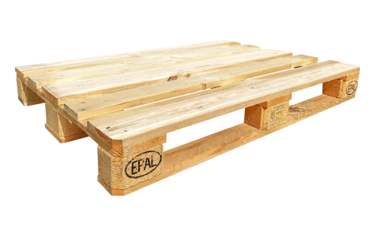Die EURO Palette Klasse A mit den Abmessungen 800*1200mm. Die Tragfähigkeit beträgt 2000 kg und die Palette ist mit 3 Brücken und 5 Deckbrettern ausgestattet